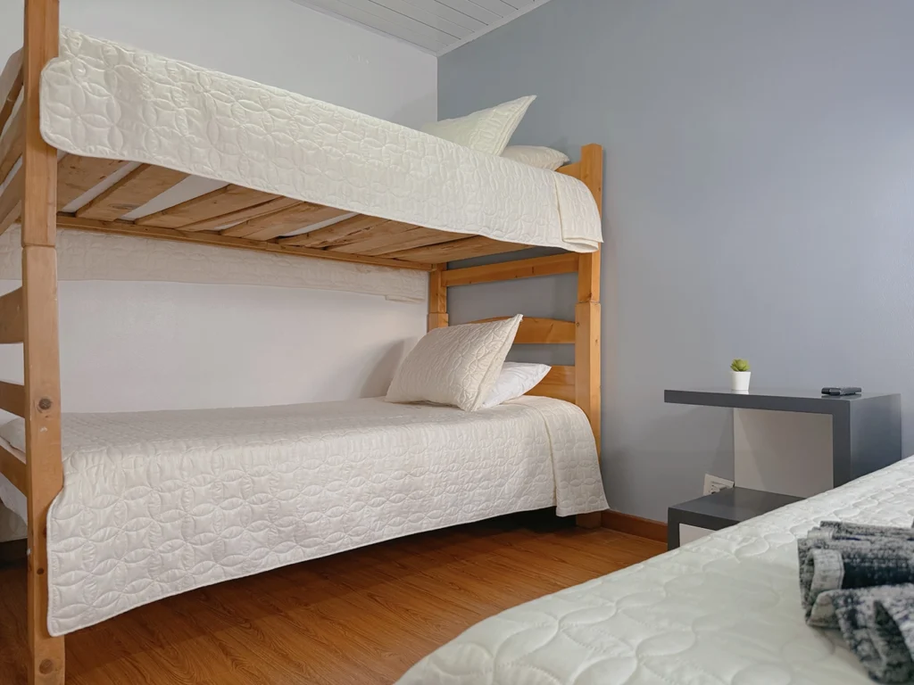 Nuestras Habitaciones con Camarote están diseñadas para grupos pequeños o familias que buscan una opción económica sin renunciar al confort. Equipadas con una cama doble y un camarote, estas habitaciones son ideales para compartir en familia o con amigos, brindando flexibilidad y comodidad para todos.